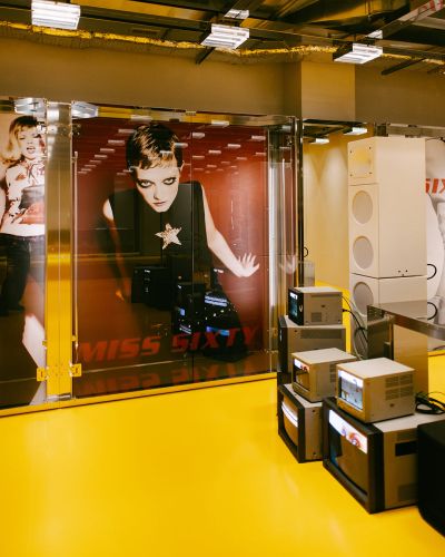 The’90s-inspired aesthetic (an essential part of the brand’s DNA) blends seamlessly with Miss Sixty’siconic archival imagery, creating a dialogue with the store’s sculptural and contemporary design conceived byNM3 and Silvia Guerrini.